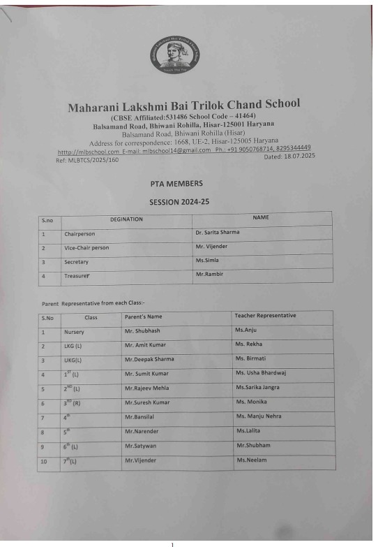 PTA MEMBERS LIST